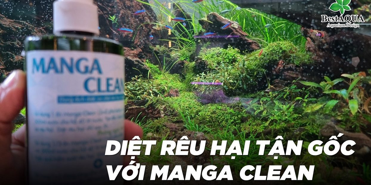 Đây là dòng sản phẩm đặc trị rêu hại trong hồ thủy sinh được Best Aqua – Yêu Thủy Sinh phối hợp với Manga Farm sản xuất và phân phối. Manga Clean có độ đậm đặc rất cao là hoạt tính mạnh, tiêu diệt tận gốc hầu hết các loại rêu hại xuất hiện trong hồ thủy sinh. Ngoài tác dụng diệt rêu hại, Manga Clean còn cung cấp Carbon ở dạng lỏng, hỗ trợ sự phát triển của cây thủy sinh và ức chế sự hình thành rêu hại.